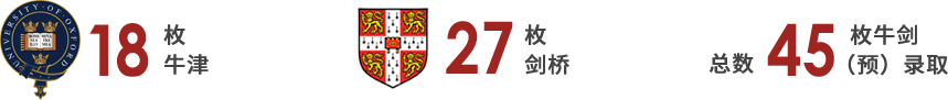 2025年1月,光华剑桥更是以18枚牛津,27枚剑桥,总数45枚牛剑(预)录取,成为全国牛剑录取数量最多的学校!